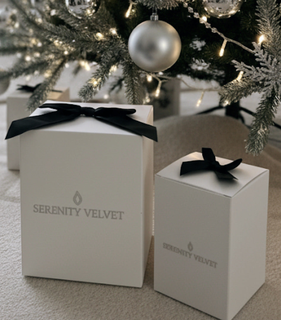 Includes branded white gift box, with black satin bow and black tissue paper insert